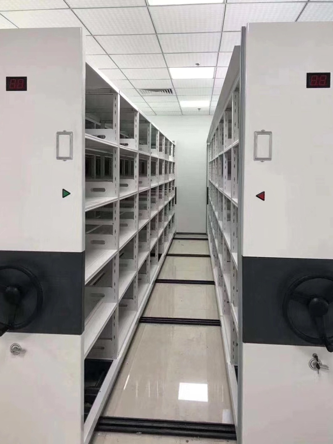 By eliminating fixed aisles between traditional racks, the dense arrangement improves space utilization to over 80% — 2 to 3 times higher than conventional static shelving. It maximizes storage capacity in limited areas, especially ideal for space-constrained archives and storerooms.